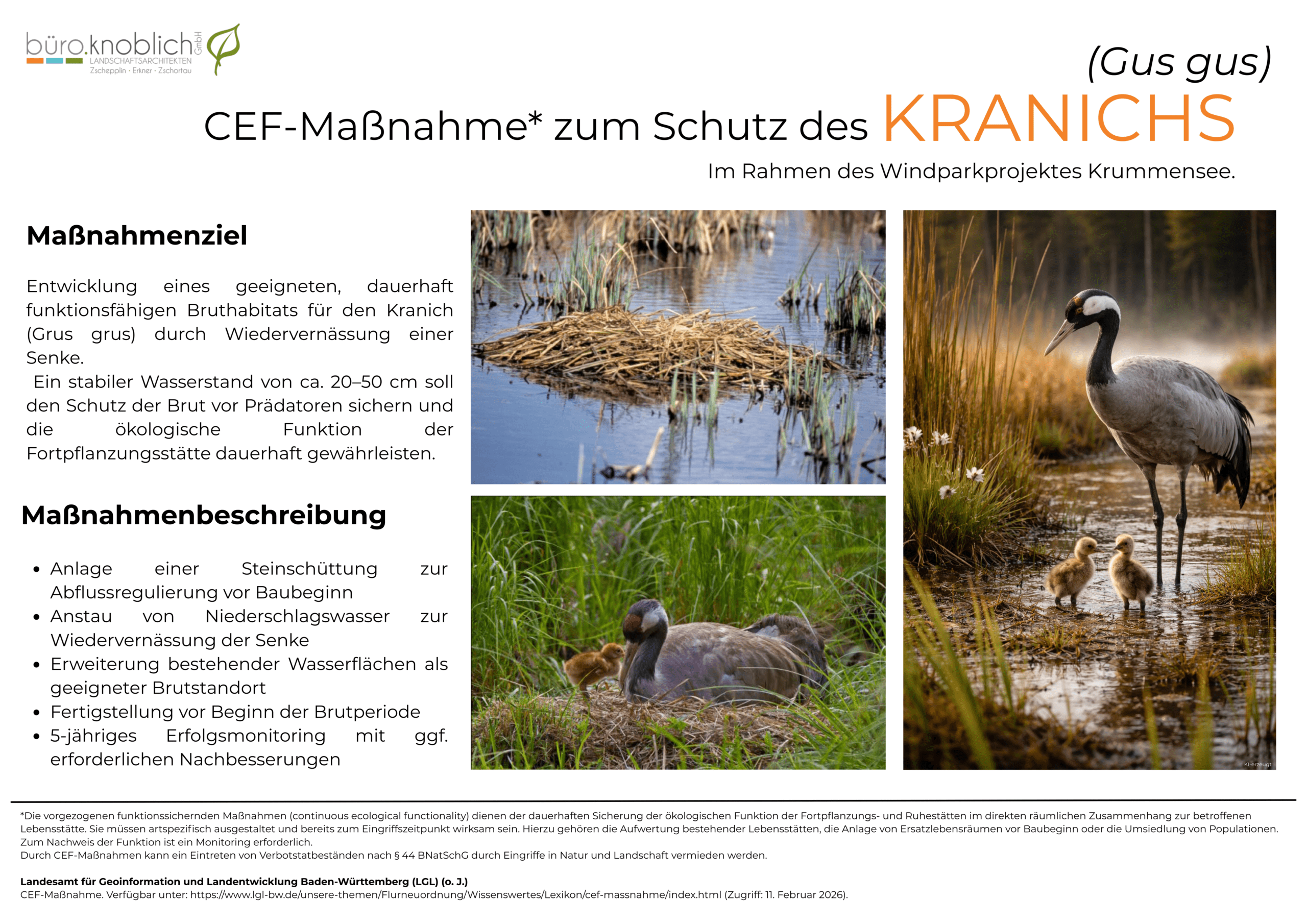 Landschaftspflegerischer Begleitplan, Artenschutzfahbeitrag, avifaunistisches Gutachten, Fledermausgutachten und Ausgleichs- und Ersatzmaßnahme — CEF-Maßnahme zum Schutz des Kranichs
